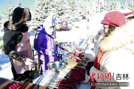 啟動(dòng)儀式后,現(xiàn)場舉行了豐富的互動(dòng)體驗(yàn)活動(dòng),包括民族歌舞快閃、吉他彈唱等演出,剪紙、鐵藝、糖人等非遺技藝展示,以及雪地拔河、趣味套圈等冰雪游戲。此外,參雞湯、關(guān)東煮等特色美食也為游客帶來了溫暖的味覺體驗(yàn)。游客們還在粉色雪景網(wǎng)紅拍照點(diǎn)和溫馴麋鹿互動(dòng)區(qū)駐足打卡,定格浪漫瞬間。