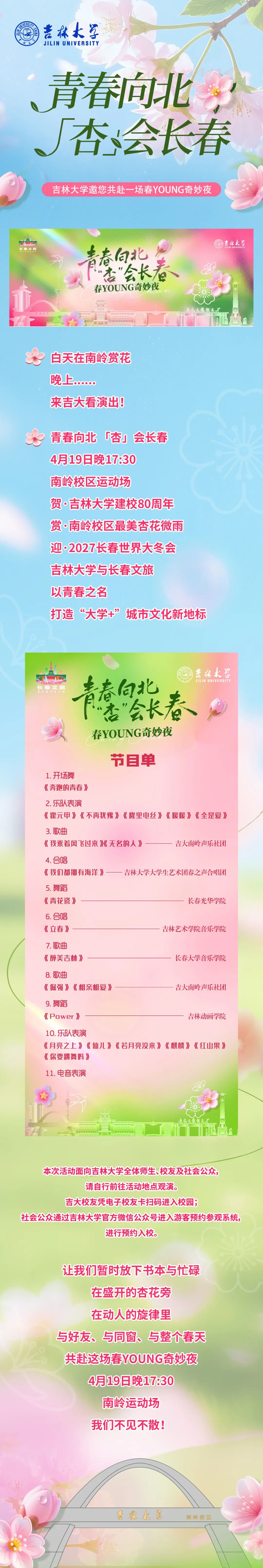 青春向北「杏」會(huì)長(zhǎng)春 吉林大學(xué)邀您共赴一場(chǎng)春YOUNG奇妙夜