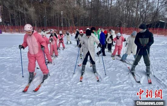 研學團成員在長春凈月潭體驗滑雪樂趣!〖质∥穆脧d供圖