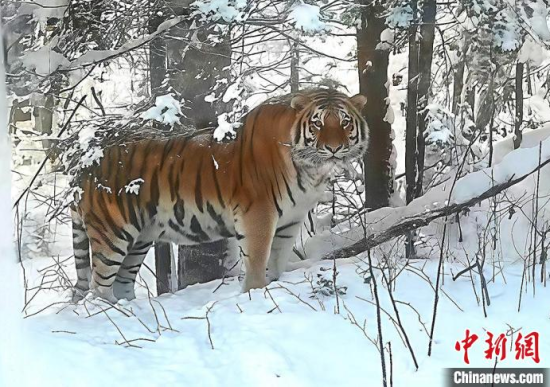 12月3日,長白山保護區(qū)工作人員發(fā)現的野生東北虎,拍攝時與老虎距離不到10米!(吉林省林業(yè)和草原局供圖)