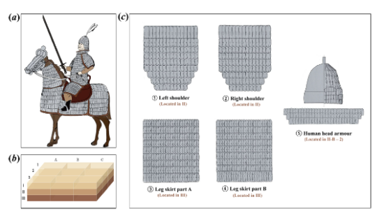 本研究對(duì)象是目前世界上已知最早的可復(fù)原甲騎具裝實(shí)物—出土于遼寧北票喇嘛洞墓地的珍貴遺存。研究結(jié)果表明,這套甲胄從結(jié)構(gòu)設(shè)計(jì)到材質(zhì)加工均體現(xiàn)出高度的技術(shù)成熟度,證明鮮卑在公元4至5世紀(jì)已具備先進(jìn)的甲胄制造能力;而古蛋白質(zhì)組學(xué)分析首次證實(shí),甲胄制作中使用了羊源材料——這一發(fā)現(xiàn)填補(bǔ)了古代游牧民族甲胄材質(zhì)研究的空白,為探討當(dāng)時(shí)草原地區(qū)的動(dòng)物資源利用、畜牧業(yè)發(fā)展與軍事手工業(yè)的關(guān)聯(lián)提供了直接證據(jù)。