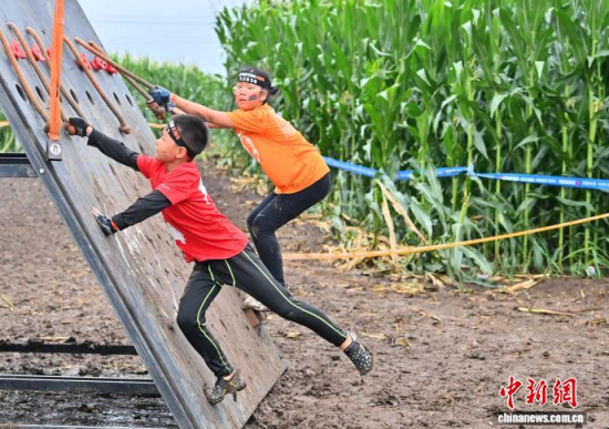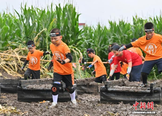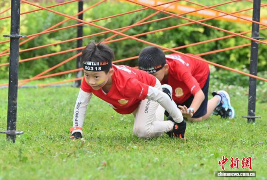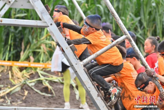7月25日,2025斯巴達(dá)勇士?jī)和愰L(zhǎng)春站在卡倫湖力旺實(shí)驗(yàn)學(xué)校開(kāi)賽。當(dāng)天大雨傾盆,參賽的小選手們熱情不減,紛紛化身“小勇士”,在泥濘的賽道上勇闖障礙、攀爬坡道。圖為參加斯巴達(dá)勇士?jī)和惖倪x手在比賽中。中新社記者 張瑤 攝