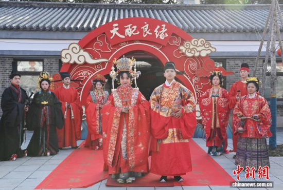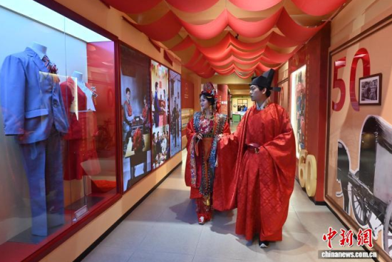 11月7日,偽滿皇宮博物院主辦的《天配良緣——近現(xiàn)代婚戀婚俗實物展》于長春開幕。展覽通過婚書、嫁妝等300余件民間實物,帶領參觀者沉浸式感受不同年代的婚禮婚俗。現(xiàn)場通過漢服走秀、嗩吶演奏等演出,展現(xiàn)傳統(tǒng)婚儀魅力。中新社記者 張瑤 攝