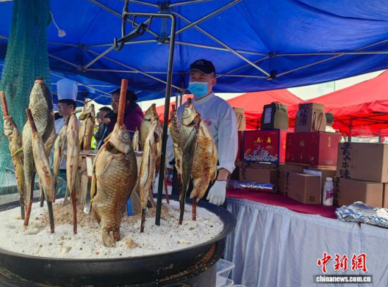 吉林市廚師現(xiàn)場烹魚吸引游客。(資料圖) 石洪宇 攝