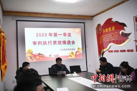 中新網(wǎng)吉林新聞1月31日電 (譚偉旗 陳思潔)近日,白河林區(qū)基層法院召開(kāi)今年第一季度審判執(zhí)行質(zhì)效工作推進(jìn)會(huì),會(huì)議由該院黨組書(shū)記、院長(zhǎng)林海軍主持。