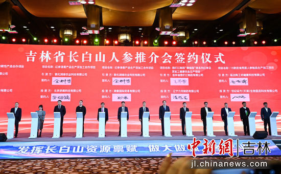 推介會上,與會人員共同觀看了長白山人參專題宣傳片。通化市委書記孫簡,白山市委書記、長白山保護開發(fā)區(qū)黨工委書記謝忠?guī)r,延邊州委副書記馮濤,分別推介人參產業(yè)發(fā)展情況;中國民族貿易促進會以及吉林華瑞參業(yè)有限公司等企業(yè)代表分別發(fā)言;進行了項目集中簽約。