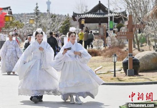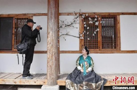 4月7日,在吉林省延邊州延吉市的中國(guó)朝鮮族民俗園內(nèi),游客身著朝鮮族服飾拍照。延邊是中國(guó)唯一的朝鮮族自治州和最大的朝鮮族聚居地,近年來(lái)延邊旅游持續(xù)火爆,朝鮮族服飾旅拍也成為最受歡迎的旅游項(xiàng)目之一。