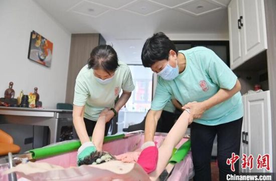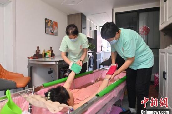 4月30日,吉林長(zhǎng)春,助浴師在為老人洗澡。近來(lái),針對(duì)行動(dòng)不便老人的助浴服務(wù)在長(zhǎng)春悄然興起,在長(zhǎng)春工作的助浴師們“五一”國(guó)際勞動(dòng)節(jié)期間訂單已排滿。(完)