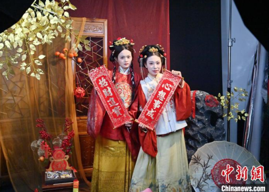1月6日,吉林長春,市民在拍攝漢服寫真。店家介紹,農(nóng)歷蛇年春節(jié)將至,漢服寫真成了顧客新需求,店家特推出百梅迎春、金蛇賀歲、招財進寶等主題,深受市民喜愛。中新社記者 張瑤 攝
