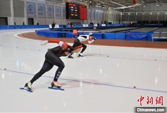 3月13日,2024-2025賽季全國(guó)速度滑冰青年錦標(biāo)賽在吉林省速滑館開(kāi)賽,來(lái)自全國(guó)各地200余名運(yùn)動(dòng)員參賽。圖為運(yùn)動(dòng)員在激烈比拼。中新社記者 張瑤 攝