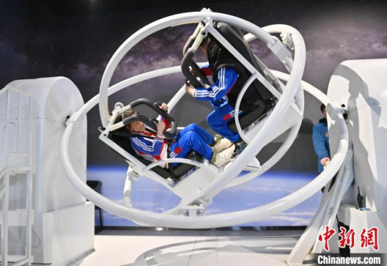 4月9日,吉林長春,小朋友在參觀航天服模型。中國航天日臨近,不少小朋友來到筑夢星辰(長春)航天科教文旅館,通過互動體驗學習航天知識,探索宇宙的奧秘。中新社記者 張瑤 攝