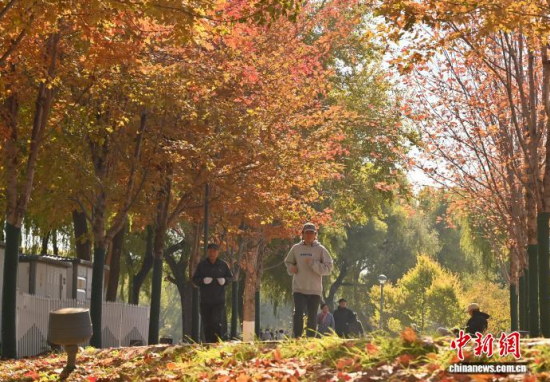 10月30日,吉林長春秋景怡人,市民踏葉賞秋,享受秋日美好時(shí)光。 中新社記者 張瑤 攝