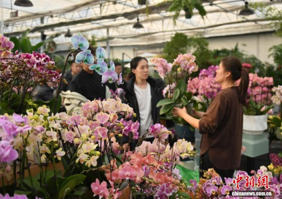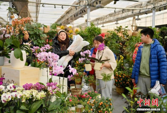 2月9日,吉林長(zhǎng)春,商家在修剪鮮花。春節(jié)臨近,長(zhǎng)春市各大花卉市場(chǎng)迎來年宵花銷售熱潮。蝴蝶蘭、大花蕙蘭、杜鵑花等象征喜慶的鮮花琳瑯滿目,吸引眾多市民前來選購(gòu);ㄉ虃兠β祩湄洝⒋虬,現(xiàn)場(chǎng)一片繁忙景象。中新社記者 張瑤 攝