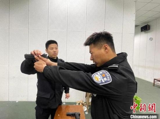 手槍擊發(fā),子彈火藥爆炸后散發(fā)的酸臭味也會迎面而來!澳阋(xí)慣槍的所有細(xì)節(jié),才能做到真正的槍人合一!焙庵颐髯屇贻p人舉槍,他則用力去觸碰對方的槍械,以強(qiáng)化射擊時的抗干擾能力。