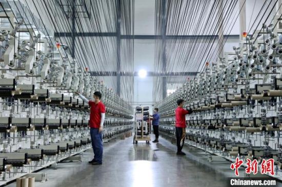 吉林市化纖企業(yè)生產(chǎn)車間正在進(jìn)行收絲作業(yè)。(資料圖) 凌西政 攝