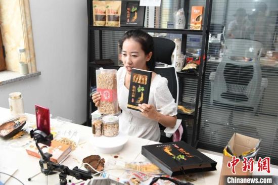 吉林參商正在網(wǎng)絡(luò)平臺(tái)直播銷售人參!埇 攝