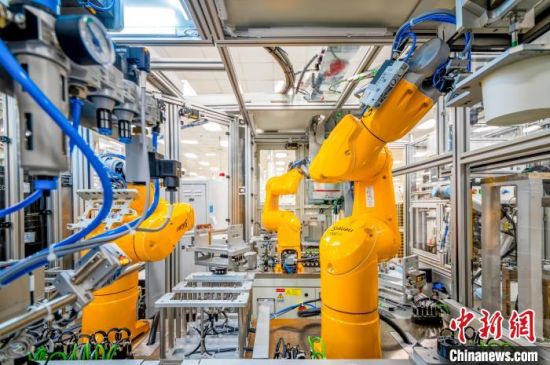 中新網(wǎng)長春4月20日電 (記者 郭佳)在長春一家汽車電子工廠,AGV機(jī)器人來回穿梭將物料精準(zhǔn)送到生產(chǎn)線指定位置,一排排工業(yè)機(jī)器人靈活地組裝工件。