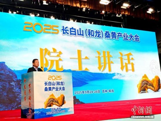 2025長白山(和龍)桑黃產(chǎn)業(yè)大會(huì)25日在吉林省和龍市開幕,圖為中國工程院院士李玉正在致辭。