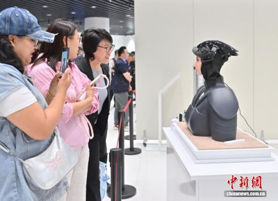 2025年9月30日,吉林省仿生機器人創(chuàng)新中心應用示范基地于吉林省長春市揭牌。圖為參觀者觀看科技文旅機器人。(資料圖) 張瑤 攝